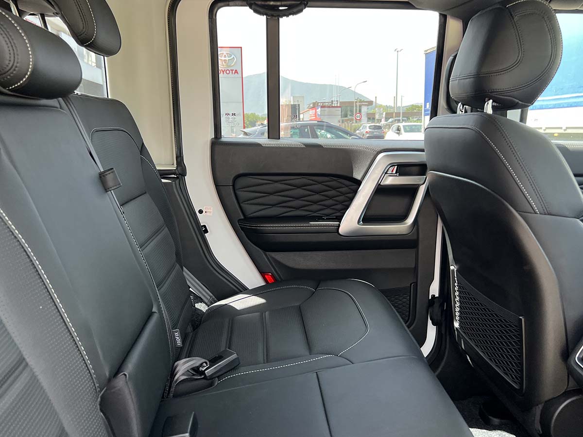 Ottima aderenza ed un maggior controllo del veicolo su ogni tipologia di terreno, anche quelli più difficoltosi con i cerchi in lega da 20″. Il passaruota dal profilo squadrato consente di aumentare l’escursione delle ruote, per superare ostacoli ancora più alti. Il paraurti in materiale plastico favorisce maggior protezione del veicolo ed un’elevata resistenza agli urti.