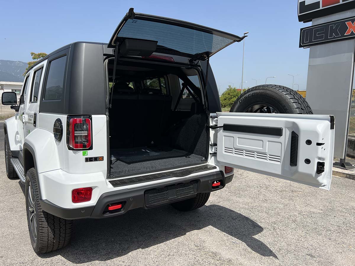 Dotazioni di Serie: Cerchi in lega 20″ – Interni in pelle – Climatizzatore automatico bizona – Fari Led – Schermo touch 12,3″ Android auto e Apple carplay – Tetto asportabile in 3 parti – Telecamera post + dash cam – Sedili anteriori elettrici riscaldabili – Vernice Opaca
